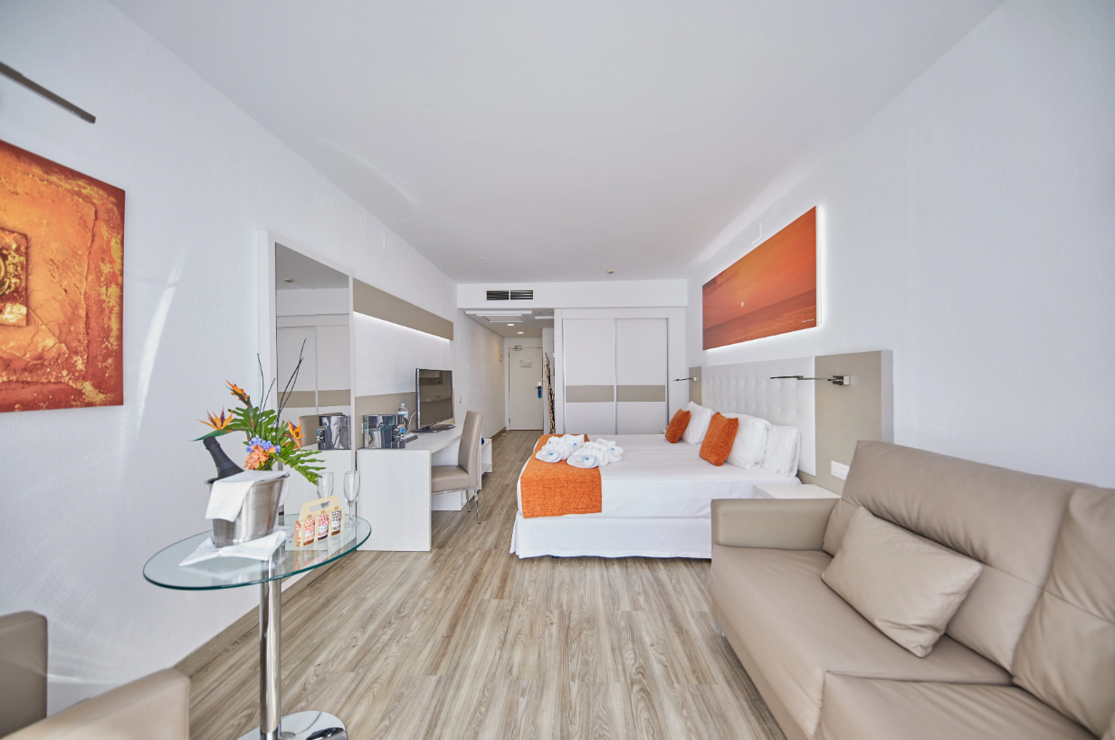 One of the main advantages of this room is access to the exclusive chill-out terrace and the gourmet restaurant for breakfast and dinner. The Royal Elite Sea View room is a good option for families. In addition to welcome gifts such as a chilled bottle of cava or hot chocolates before bed, the Royal Elite Sea View room offers excellent views, a furnished terrace, a flat-screen TV, plenty of space, and more.