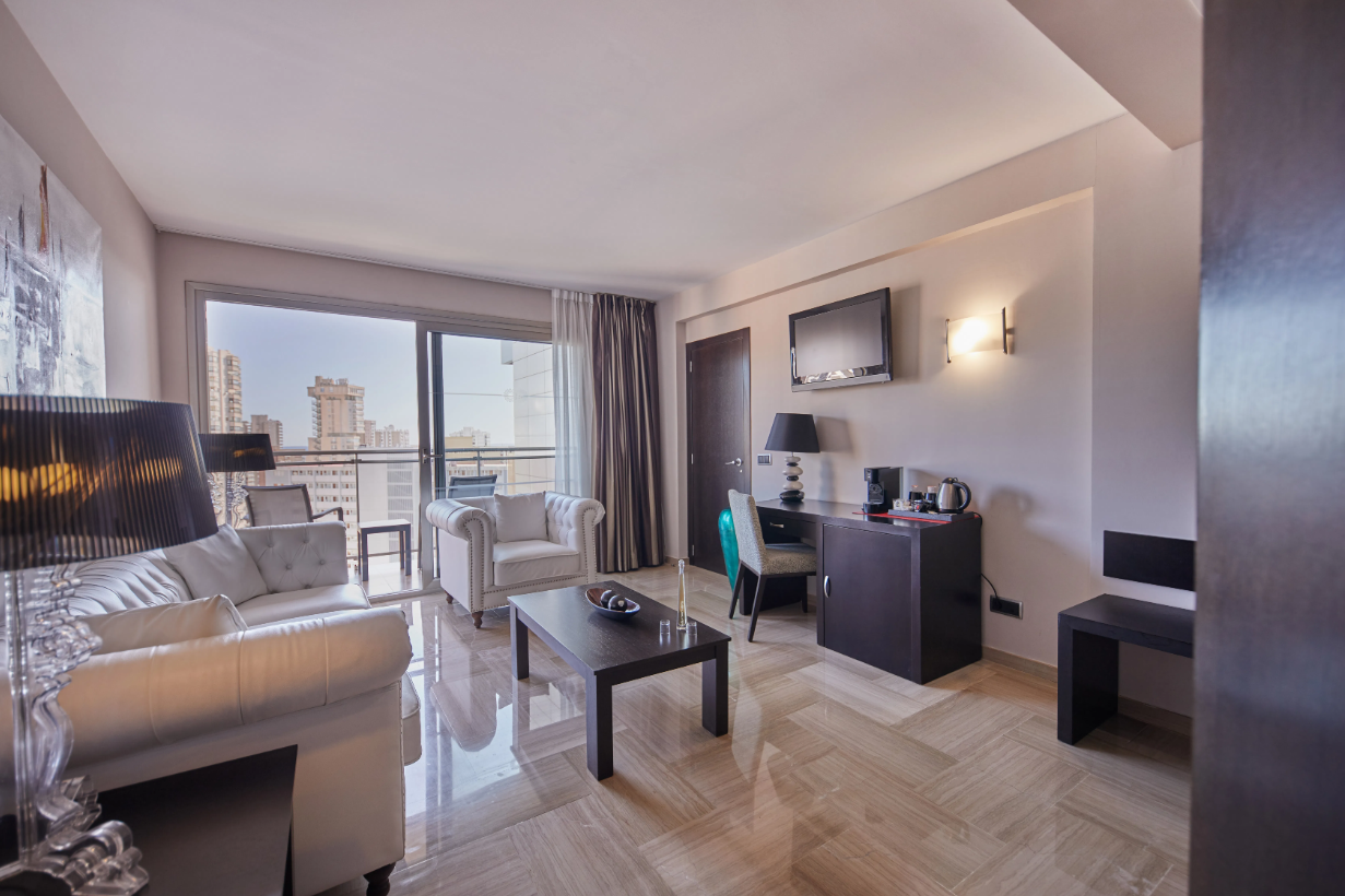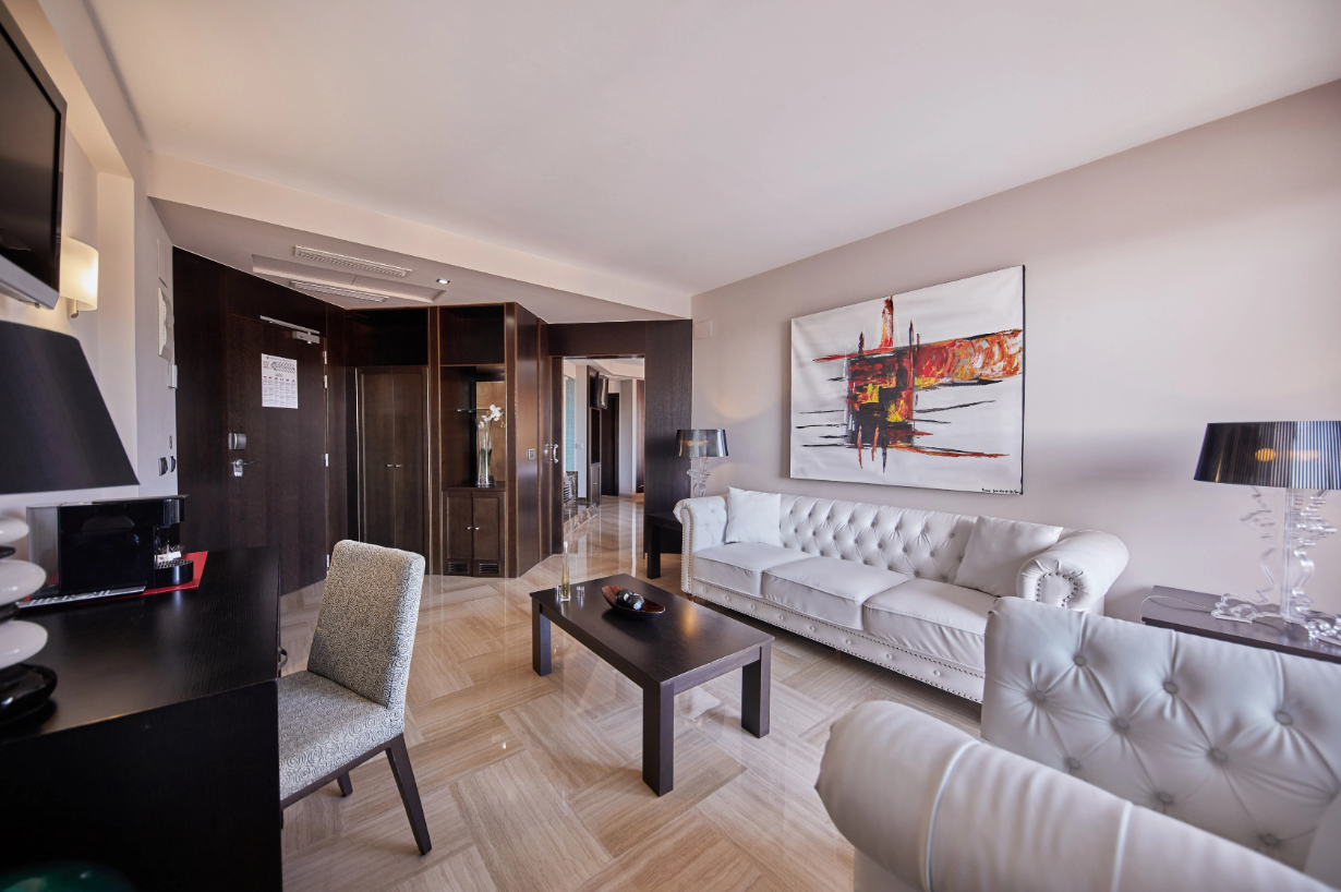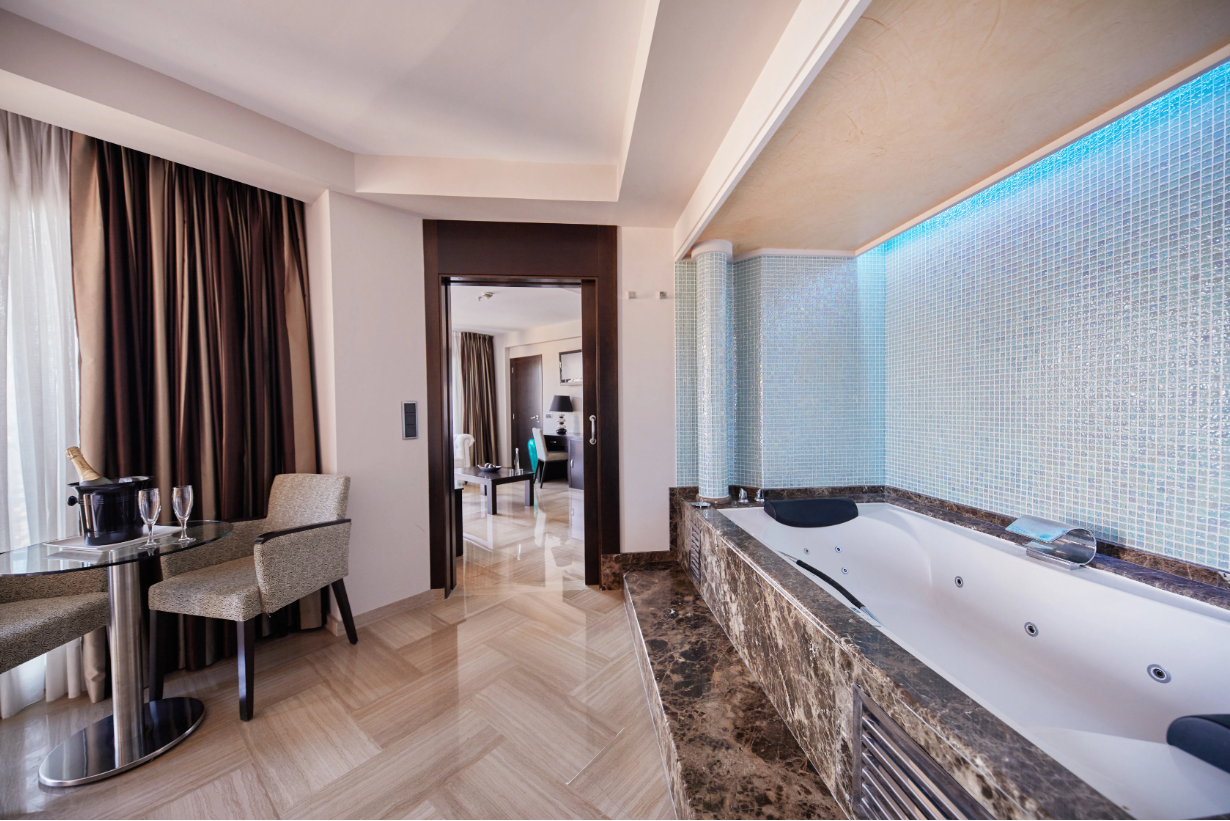 Private Jacuzzi with panoramic views, king-size bed, separate living room, and all the benefits of the Select program. It includes a romance kit, whirlpool tub, heated towel rack, safe, eco-friendly amenities, a full minibar, and sound system. All designed for those seeking a unique experience of luxury and comfort.