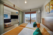 Además de dos ambientes separados por puertas correderas, incluye cafetera, microondas (bajo petición) y caja fuerte incluida. Ideal para quienes desean una estancia más exclusiva en familia o pareja.